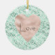 Girly Glam Mint White Leopard Print Blush Heart Ceramic Ornament