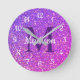 Girly Glam Purple Glitter Monogram Personalized Round Clock