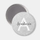 Girly and glam silver glitter sparkles monogram name and initial magnet. Personalize with your custom name in gray and your monogram initial in white. You can change the text color and font style and size using the customize option.