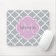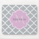 Girly Gray Quatrefoil Lavender Monogram and Name Mouse Pad