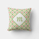 Girly Green Quatrefoil Cute Daisies and Monogram Throw Pillow