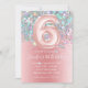 Girly Holographic Glitter 6th Pink Birthday Invitation