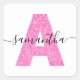Girly Hot Pink Glitter Letter A Monogram Square Sticker