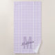 Girly lavender purple grid pattern monogram name beach towel