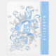 This fun girl's volleyball themed fleece blanket features an "explosion" of varied size light blue, gray and white volleyballs and blue, gray and white star shapes on a customizable black background - customize with athlete's name and jersey number - the blue and gray volleyball panels are blended with a girly floral kaleidoscopic pattern for a textured appearance - by katz_d_zynes