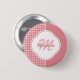 Girly Light Pink Houndstooth Monogram With Name Button