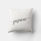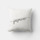 Girly Minimalist Simple Clean Black And White Monogram Name Script Custom Personalized Pillow. These design featuring your first name in a pretty hand lettered style swash tail font signature typography (or calligraphy) black script on white color background. These are easy to customize it. Great stylish feminine housewarming gift, also for birthday, mother’s day, wedding, sweet 16 birthday party, bridal shower, baby shower, for graduation and It’s for the girl who loves unique stylish things.