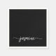 Modern Minimalist Elegant Black Feminine Monogram Name Script Signature Custom Personalized Paper Napkin. This design featuring your first name in a pretty hand lettered style swash tail font signature typography (or calligraphy) white script on black color background. These are easy to customize it. Great for birthday, wedding, sweet 16 birthday party, baby shower, bridal shower, bachelorette party, for graduation party and It’s for the girl who loves unique minimalist things.