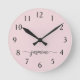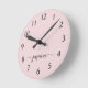 Girly Simple Minimalist Blush Pink Monogram Name Script Custom Personalized Round Clock. These design featuring your first name in a pretty hand lettered style swash tail font signature typography on blush pink rose or dusty pastel pink. These are easy to customize it. Great stylish feminine housewarming gift, also for birthday, mother’s day, wedding, bridal shower, sweet 16 birthday party and baby shower, graduation and It’s for the girl who loves unique sparkle stylish things.