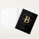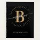 Girly, modern, trendy, elegant, black and gold monogram initial name script custom personalized monogrammed beauty salon 2024 or any year planner. Featuring a monogram initial and a girly name script in a hand lettered calligraphy swash tail font and dotted circle frame around your monogram. Great feminine girly gift for birthday, sister, mother, wedding, bridal shower, sweet 16 birthday party and baby shower, beauty salon owners, makeup artist, fashion blogger and for anyone who loves pretty modern style.