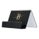 Girly, modern, elegant, minimalist black and gold monogram initial name script custom personalized monogrammed desk business card holder. Featuring a monogram initial and a girly name script in a hand lettered calligraphy font with swash tails and dotted circle frame around your name. Great feminine girly design for beauty salon owners, fashion blogger, home office, professional work, college university back to school, or anyone who loves stylish pretty modern style.