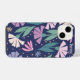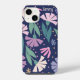 Girly Modern Pink Flowers iPhone Case Navy blue
