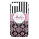 Girly Modern Pink Glitter Damask Personalized Case-Mate iPhone Case