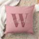Customizable Monogram and Name written over the monogram in shades of pink and blush. The monogram is a big letter in dark pink red and the name is written in handwriting letters with very pale pink color.