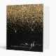 Girly Monogram Black Gold Glitter Heart Script 3 Ring Binder