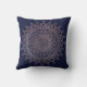 Girly Navy Blue and Rose Gold Mandala Boho Throw Pillow