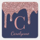 Girly Navy Blue Blush Pink Sparkle Glitter Drips Square Sticker