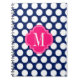 Girly Navy & Pink Big Dots Monogrammed Notebook
