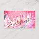 This girly and glamorous customer loyalty business card is perfect for a stylish and trendy professional businesswoman. It depicts faux printed sparkly thick glitter drips on top of pearl nacre, opal, holographic, and iridescent background with a color scheme that includes neon coral pink, teal green, magenta purple, white, blue, and coral orange. It also features sweet and delicate handwritten script typography with the word, "loyalty card," to match this design's cute and modern vibe. It's pretty, glamorous, chic, and trendy.