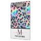 Girly Opal Leopard Print Elegant Office or School Clipboard – Custom Name & Monogram
