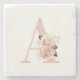 Girly Pale Rose Gold Glitter Floral Monogram A Stone Coaster