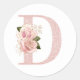 Girly Pale Rose Gold Glitter Floral Monogram D Classic Round Sticker