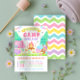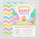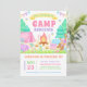 Designed with a clean white background and sweet watercolor-style elements, this invitation is ideal for campground parties, backyard campouts, glamping sleepovers, lake days, or park celebrations. The soft pinks, purples, greens, and yellows create a bright, happy vibe that feels both whimsical and modern.