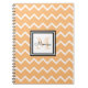 Personalized white and pastel orange chevron pattern spiral notebook with a name in black and monogram in matching orange shade.