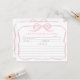 Girly Pastel Pink Bow Bridal Shower Recipe Card