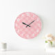 Girly Pastel Pink Wavy Checkerboard Large Clock