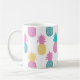 This girly monogram coffee mug is great for the pineapple lover. Sweet pineapples adorn the design in shades of blue, purple and pink on a white background. Makes the perfect gift for a loved one. Customize yours today!