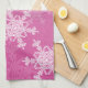 Girly pink and white Christmas snowflakes Kitchen Towel