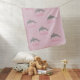 Girly pink baby blanket with cute grey dolphins. Personalized receiving blanket with cute sea animal for girl or boy. Neutral gray fish design for new baby and mom. Custom color background ie pastel pink, blue or yellow. Cute typography design for newborn child. Also nice for kids 1st Birthday. Nautical / beach theme pattern. Aquatic ocean life.