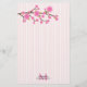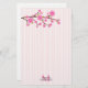Light pink and white vertical stripes illustrated with a cute bright pink cherry blossom tree branch. Personalize it with your name and/or monogram.