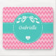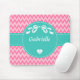 Girly Pink Chevron Pattern Cute Mint Bow With Name Mouse Pad