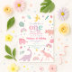 Girly Pink Dinosaur 1st Birthday Invitation
