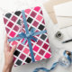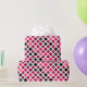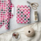 This wrapping paper features a colorful geometric pattern in black, gray, and pink shades with a faux glitter texture. Great for Valentine's Day or girl's birthday gift wrapping.