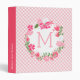 Girly Pink Floral Wreath Personalized Monogram 3 Ring Binder