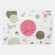 A girly mod circle pattern item with pretty pink, green, and brown gingham pattern circles and cute retro daisy flowers and shapes.