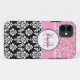 Girly, Pink, Glitter Black Damask Personalized Case-Mate iPhone Case