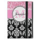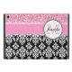 Girly, Pink, Glitter Black Damask Personalized iPad Mini Case