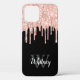 Girly Pink Glitter Drip Grey Monogram Case-Mate iPhone Case