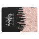 Girly Pink Glitter Drip Grey Monogram iPad Pro Cover