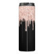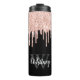 Girly Pink Glitter Drip Grey Monogram Thermal Tumbler