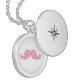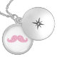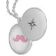 GIRLY PINK GLITTER MUSTACHE PRINTED SILVER PLATED NECKLACE