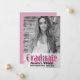 Personalize this Girly Pink Glitter Photo Graduate announcement card. This design features your picture as background, the word Graduate in pink glitter, name and date.