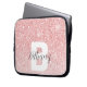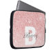 Girly Pink Glitter Sparkles Monogram Script Name Laptop Sleeve