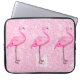 Girly Pink Glitter Tropical Flamingos Pattern Laptop Sleeve