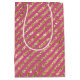 Girly Pink Gold Glitter Stripes Medium Gift Bag