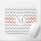 Girly Pink Grey Chevron Pattern with Monogram Mouse Pad